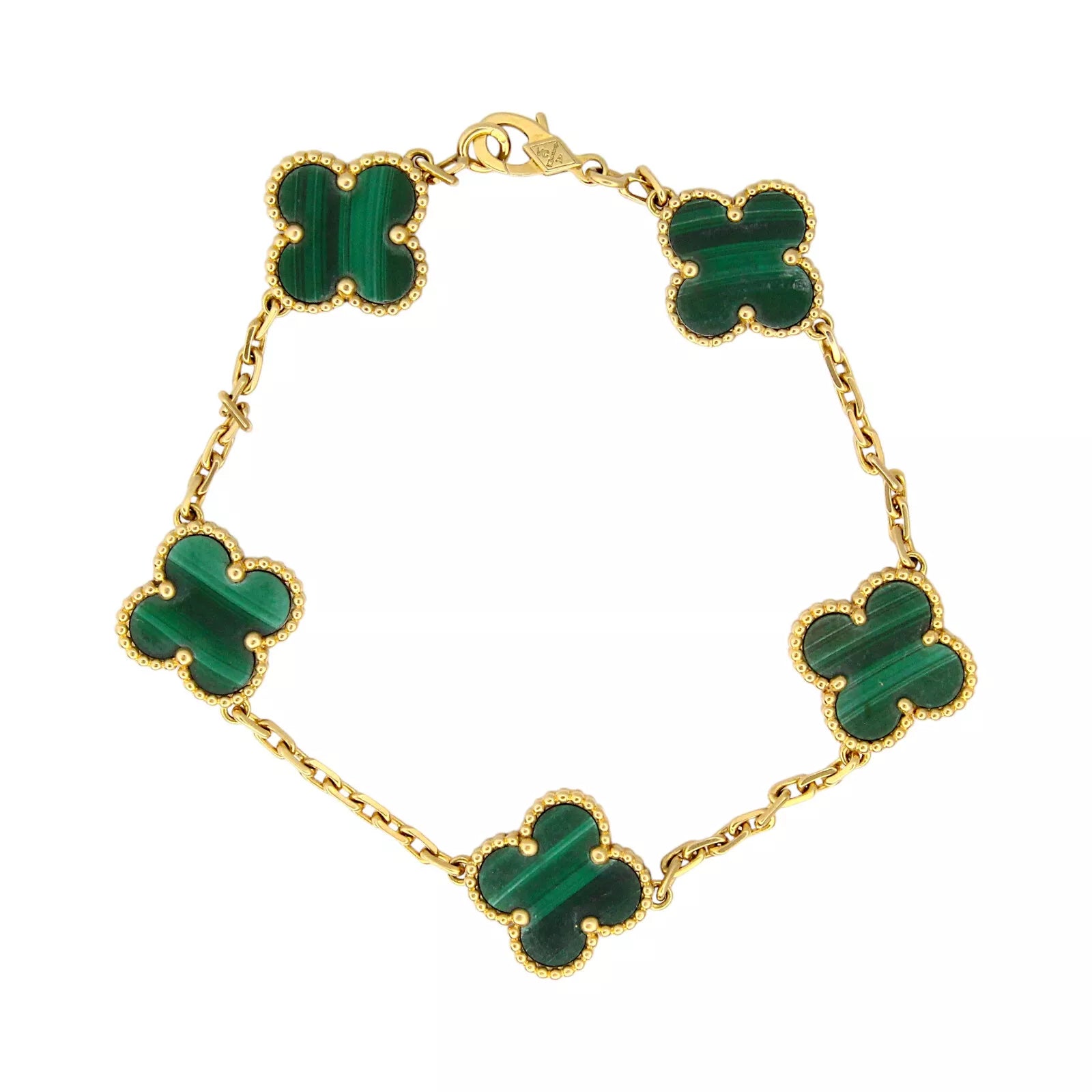 Vintage Alhambra bracelet, 5 motifs, 18K yellow gold, malachite.