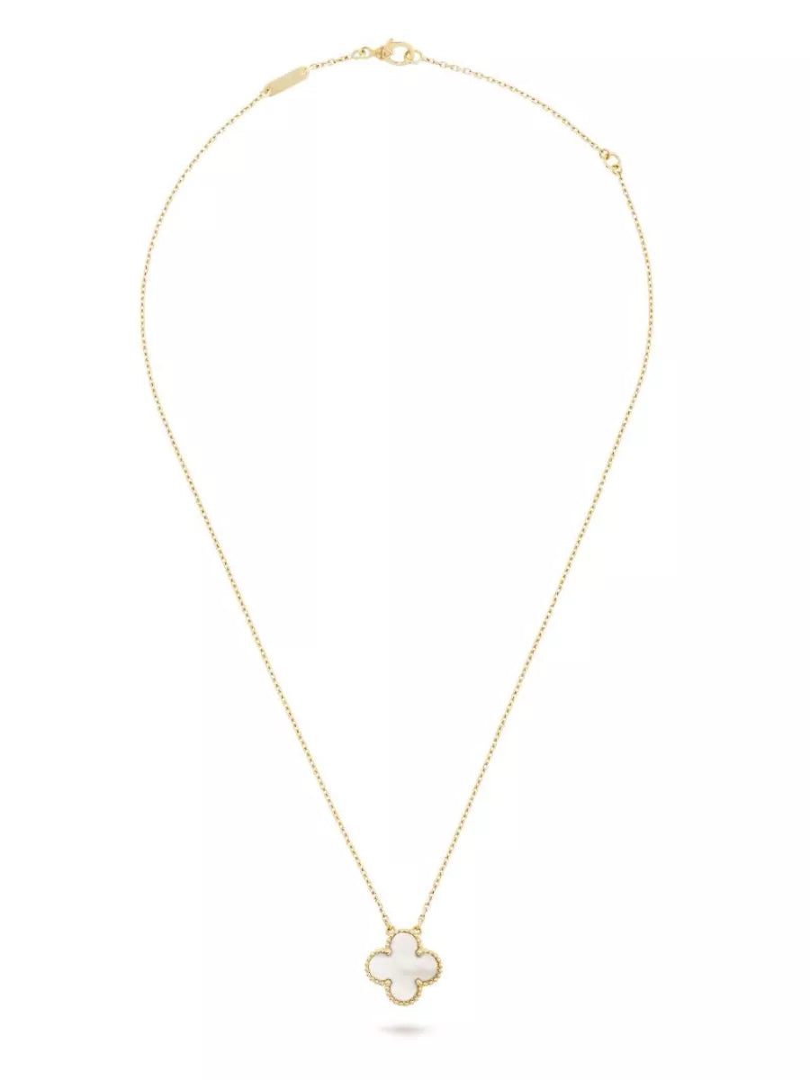 Vintage Alhambra pendant, 18K yellow gold, white mother-of-pearl.The pendant is attached to the necklace’s chain